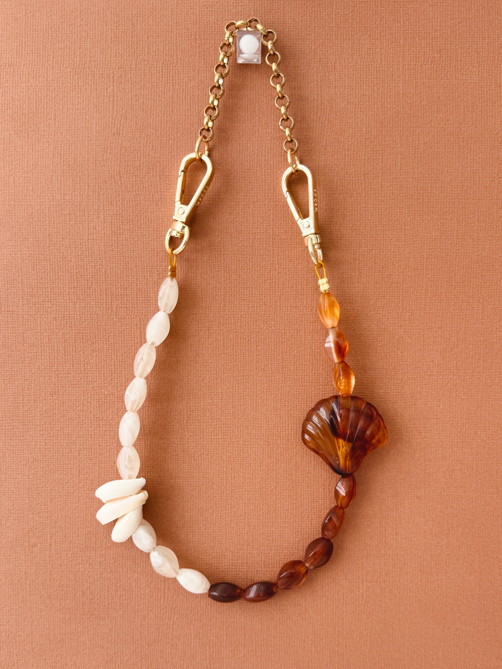 A mix of amber and cream acrylic and shell beads makes the Santa Margherita strap super lightweight and inexplicably pretty.