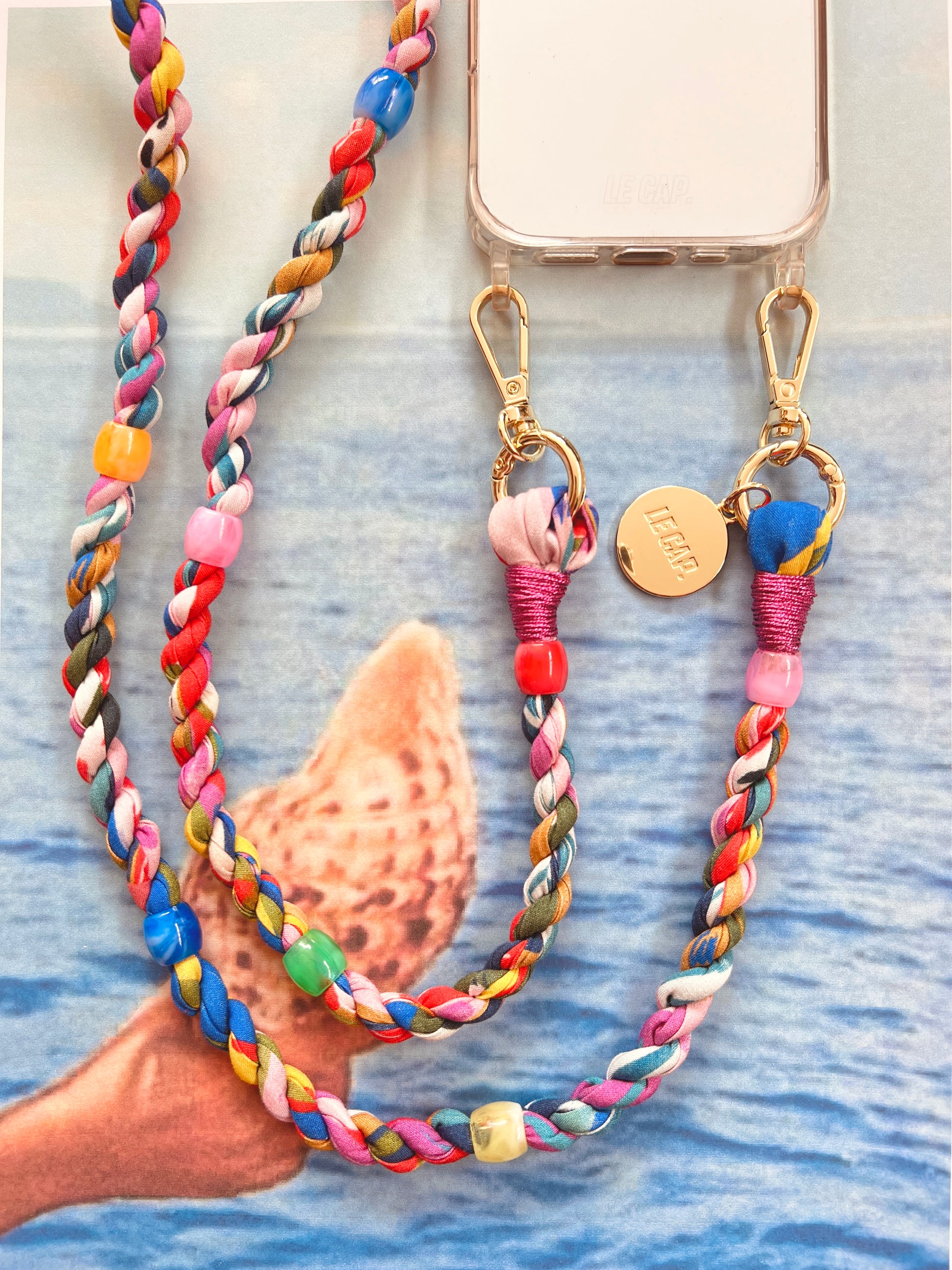 This twisted fabric crossbody phone strap features wooden and gold-plated 304 stainless steel beads. Strap charms are detachable. Attach straps to our phone cases, quilted bags or even your water bottle holder!