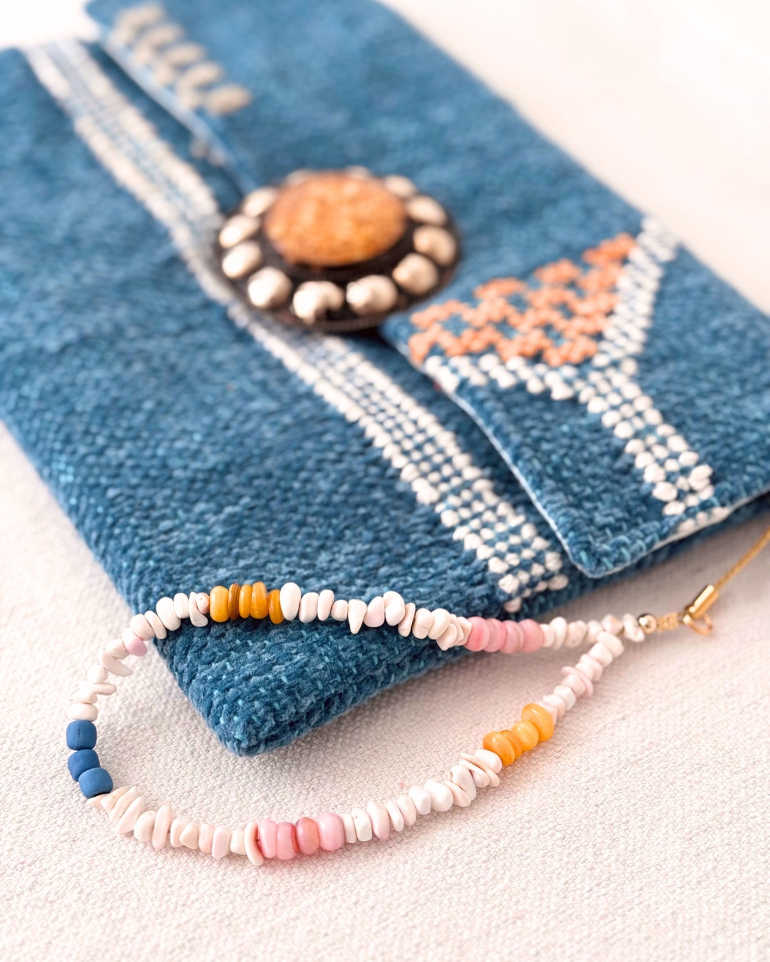 The fun cousin of our beaded Wristlets, the Tingle is a lightweight, mixed bead phone charm that adds instant joy to your life. Each Tingle is made from a mix of ceramic, shell, resin, glass and natural stone beads.