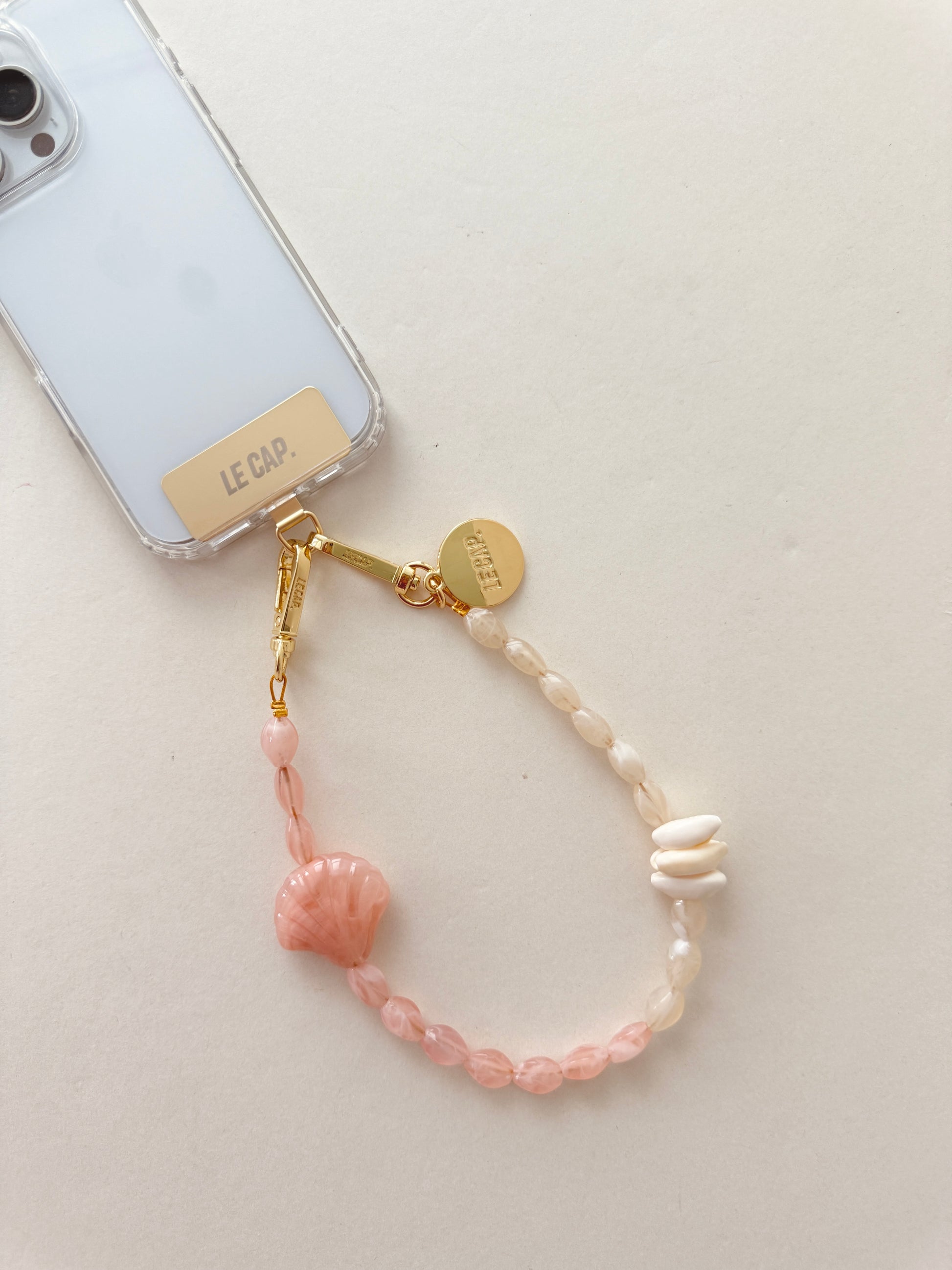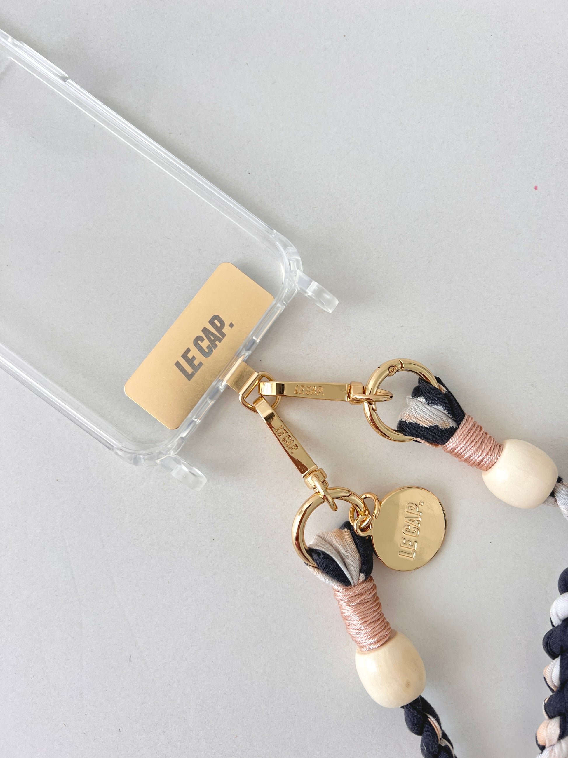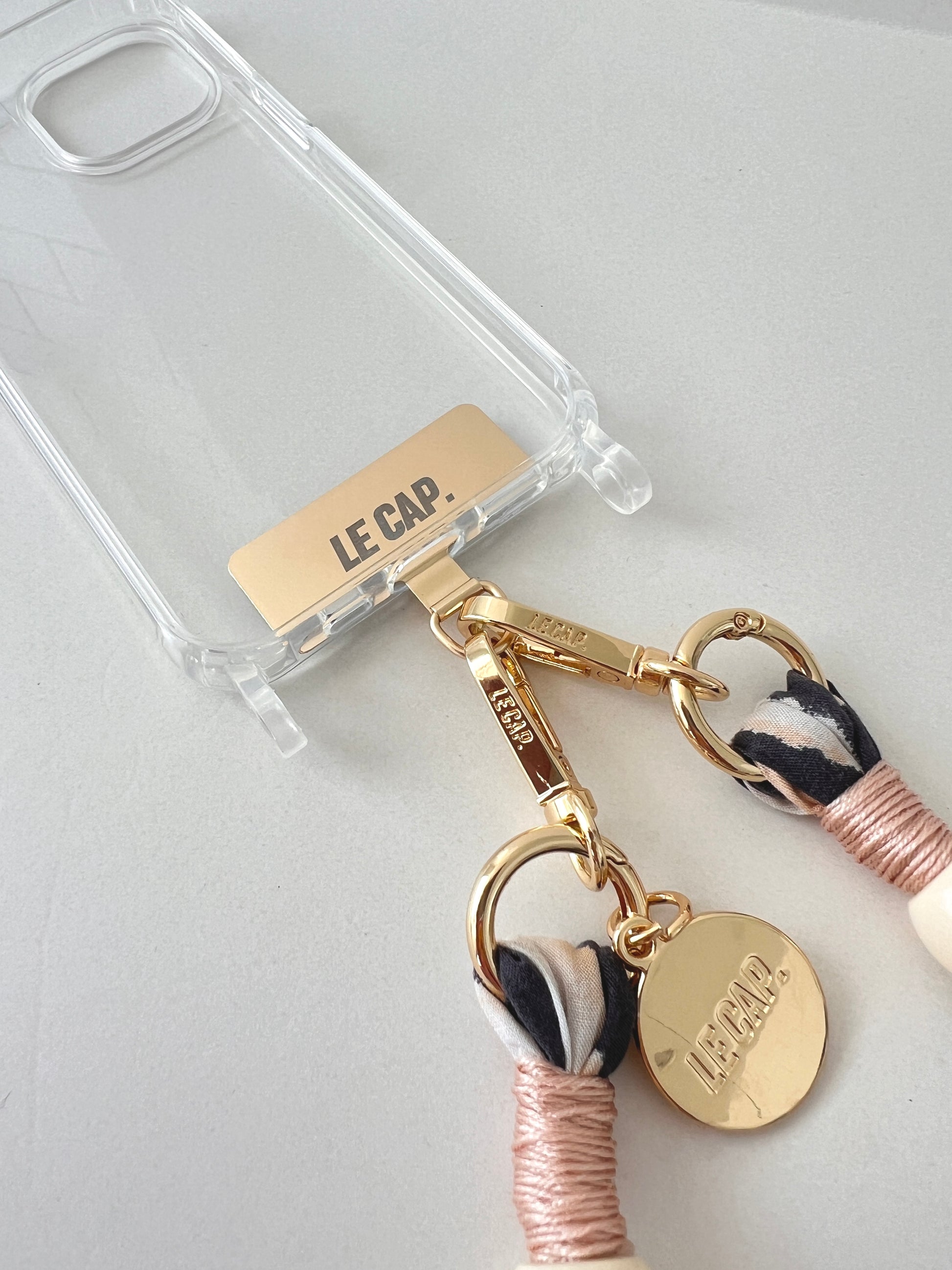 The Le Cap universal tether works on all phone models - fitting between your phone and phone case, providing a secure attachment point for Le Cap cross-body straps and beaded wrist straps.