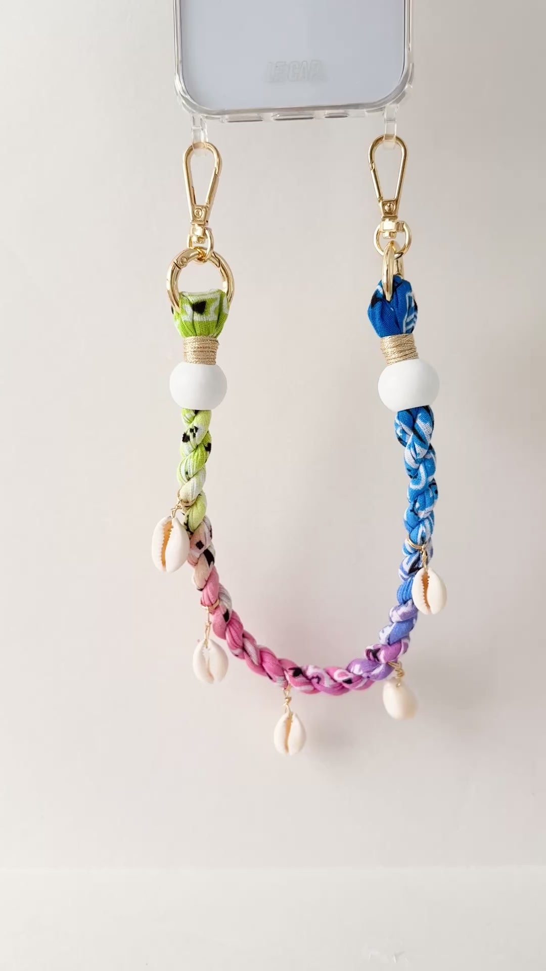 Clear phone case or tether included. Choose your case size from the dropdown menu.